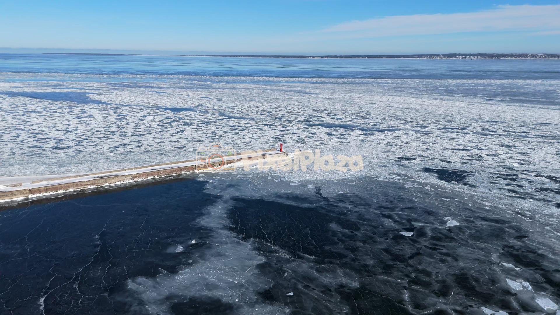 Jäätynyt Itämeri ja aallonmurtaja Paljassaaressa, Tallinnassa – 4K Drone Video