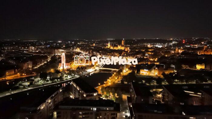 Aerial Drone View of Gdańsk at Night – Stunning Cityscape Lights – 4K Drone Video