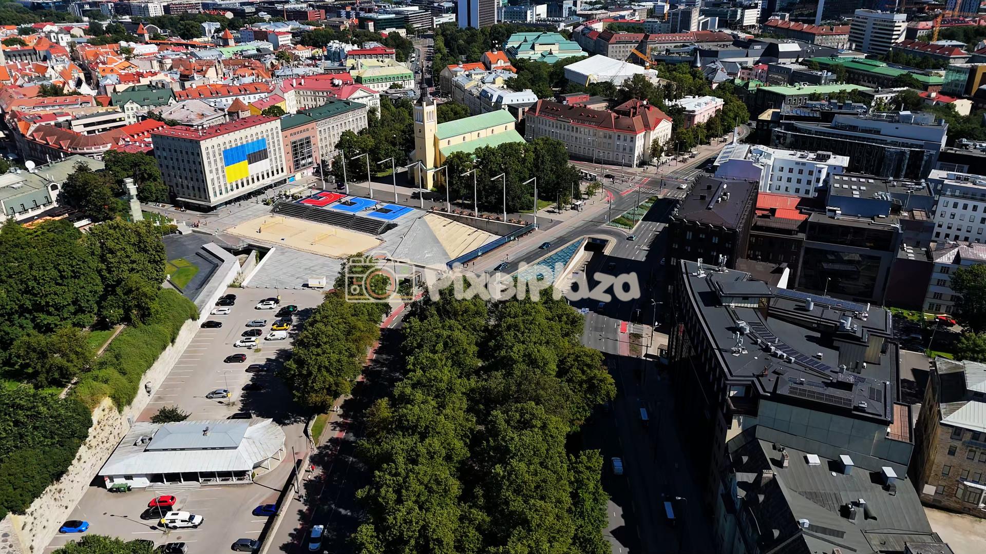 Beautiful aerial drone footage over Freedom Square in Tallinn – capturing historic architecture, urban culture, and summer city life in Estonia’s capital.