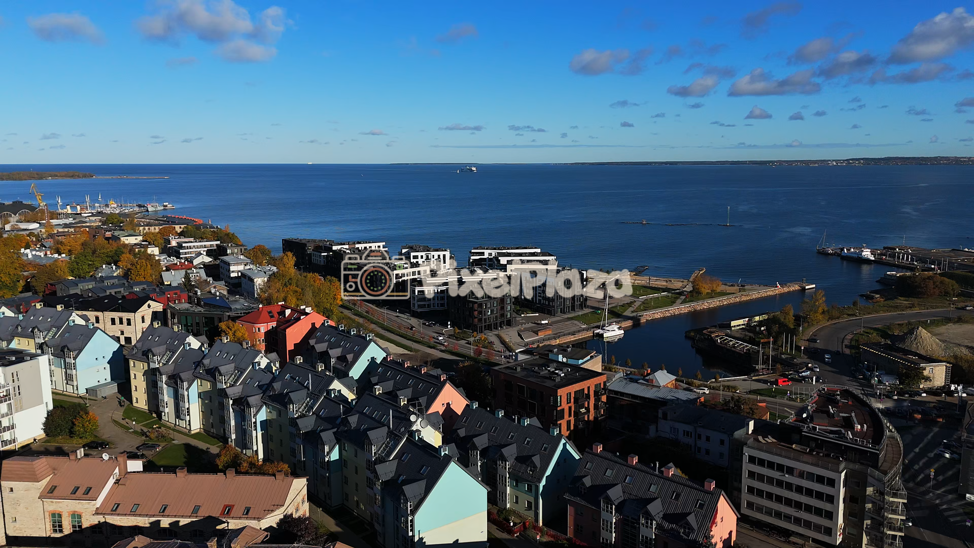 Beautiful aerial drone video of Kalaranna, Tallinn – showcasing colorful buildings, marina, and Baltic Sea views. Ideal for travel, architecture, and real estate visuals.