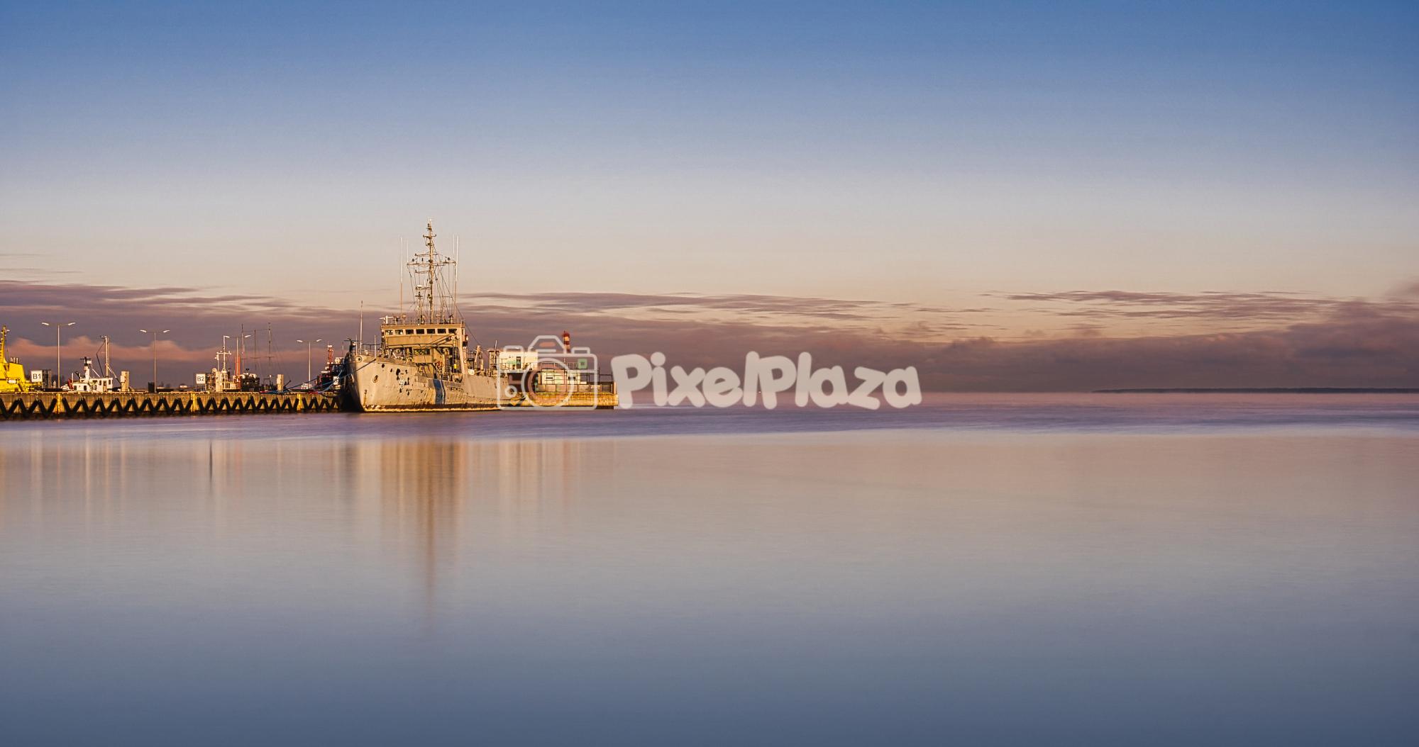 Long Exposure of Naval Ship at Harbour During Pastel Sunset