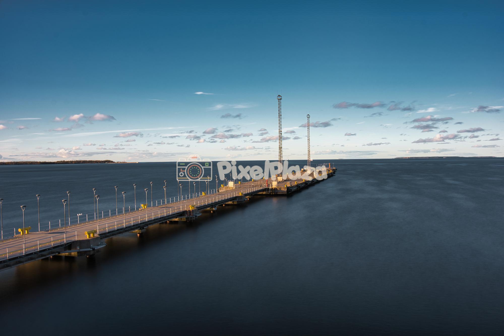 Long exposure view of the modern Tallinn Cruise Terminal pier and the Baltic Sea